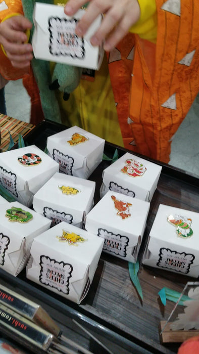 Chef's Special! Who doesn't love a MYSTERY! The Chef's Special Mystery Box contains THREE random Sushi Tomodachi hard enamel pins and two random stickers.